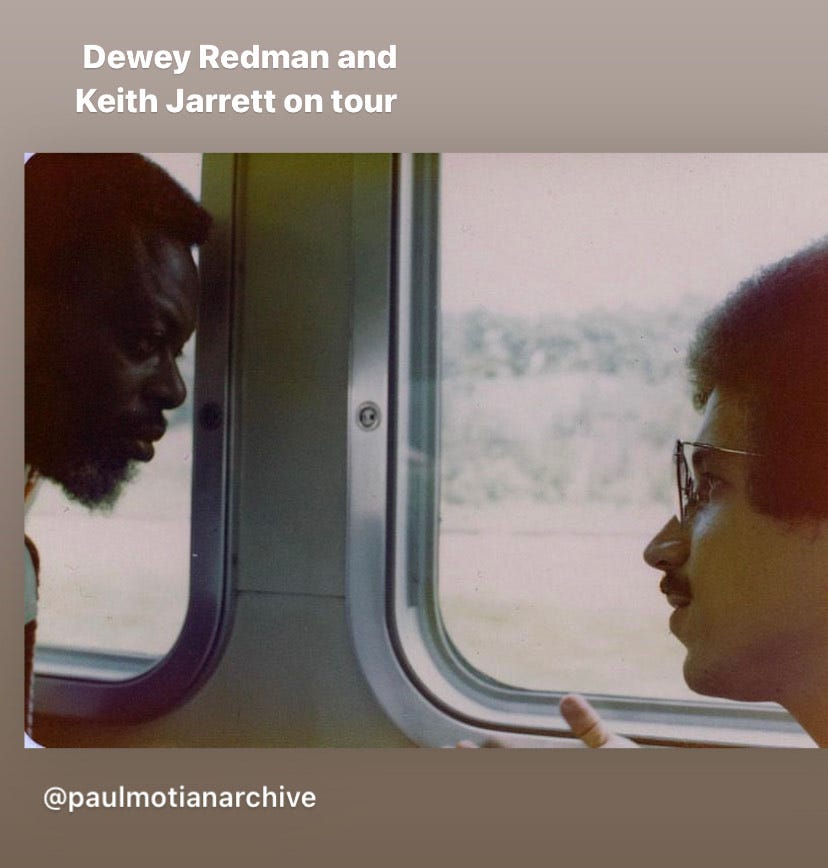 Keith's album "Survivors' Suite" is one of my favorite albums ever. Dewey told me he was strung out on that session and between each song had to go to the bathroom to be sick. ECM producer Manfred Eicher didn't know why Dewey was so sick; he thought Dewey just had a stomach ache, but Keith knew and he wasn't happy. In fact the American Quartet ended after that record, but what an incredible send-off. You can hear Dewey really playing some changes on "Survivors' Suite," complex ones. People have said Dewey wasn't a changes player, but that’s just not true. When I met Keith Jarrett at the Deerhead Inn, he told me he also didn't consider Dewey a changes player, but that one night Dewey literally channeled Coleman Hawkins through his horn and played the living daylights out of some changes, and everyone was just jaw to the floor. When Keith asked Dewey what happened, he said, "Don Byas died today and I felt his spirit."