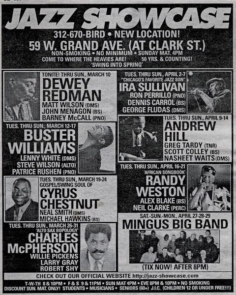 We played a week in Chicago at the Jazz Showcase. At JFK, Dewey skipped over to the bar and ordered a 10 a.m. double cognac. He wasn’t looking after himself. The gigs went great, but I caught the flu halfway through the week. Dewey checked in on me throughout the day, asked if I needed anything, and was always caring—he looked after his band.